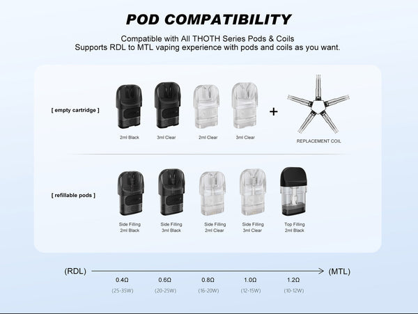 4. THOTH series pod cartridge & coils compatible.